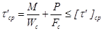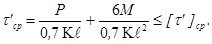 При нагружении простого углового шва моментом М и силой Р условие прочности имеет вид: