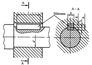 Рабочими у призматической шпонки являются более узкие, боковые грани. Шпонка погружена в паз вала на глубину ≈ 0,6 h, а в радиальном направлении между шпонкой и ступицей предусмотрен зазор.
