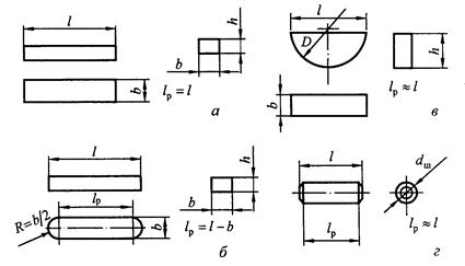 Рис. 5.2 Виды наиболее часто применяемых шпонок: