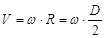 где D и R – диаметр и радиус вращения точки, где определяют скорость.