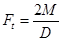 Окружная сила Ft связана с передаваемым моментом M следующим образом: