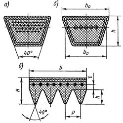Рис. 10.9. Ремни и шкивы клиноременной передачи: