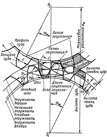 Рис. 13.3. Элементы зубчатого зацепления