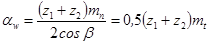 | Параметры зацепления | Формулы |