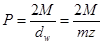 где: P – передаваемое окружное усилие;