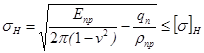 Подставим в формулу для σH значения qn ρпр и E = 2,15 ×106, после преобразований получим расчетную зависимость (в форме, рекомендованной по методике СЭВ)