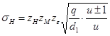 где: zH – коэффициент, учитывающий форму соприкасающихся поверхностей.
