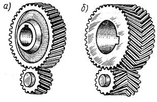 Работа косозубой передачи связана с действием на опоры осевых нагрузок, поэтому в мощных редукторах применяют передачи, не передающие на опоры осевых нагрузок. Шевронные колеса представляют собой соединенные вместе два косозубых колеса с одинаковым, но противоположно направленным наклоном зубьев, и имеют угол наклона зубьев в пределах β = 25–40.