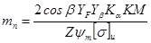 Эквивалентное число зубьев ZV – это число зубьев эквивалентной прямозубой шестерни, имеющей радиус делительной окружности равный радиусу кривизны длительного цилиндра в сечении, нормальном к зубу. Если прочность на изгиб является основным критерием, то нормальный модуль определяется по формуле: