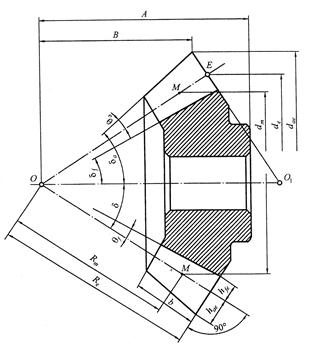 Рис. 15.2. Геометрические и конструктивные параметры прямозубых конических колес