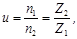 Передаточное число (u) червячной передачи определяют исходя из условия, что за один оборот червяка червячное колесо поворачивается на число зубьев, равное числу заходов червяка: