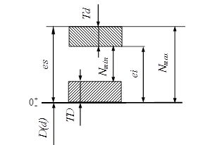 Зону ограниченную верхним и нижним предельными отклонениями называют полем допуска. Поле допуска характеризуется не только величиной, но и положением относительно номинального размера (нулевой линии). Поле допуска детали может располагаться выше, ниже, симметрично и не симметрично относительно нулевой линии.