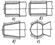 Цапфы (шейки) вала – участок вала, которым он опирается на подшипник и воспринимает радиальную нагрузку, называется цапфой. Цапфы осей и валов, работающих в подшипниках скольжения, бывают: цилиндрическими (рис. 20.1, а), с буртами (рис. 20.1, б), коническими (рис. 20.1, в) и шаровыми (рис. 20.1, г).