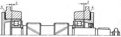 Осевая фиксация одиночного колеса. Для крепления колеса без зазора ставят калиброванное компенсационное кольцо. Кольцо подбирают при сборке (шлифуют по торцам).