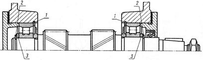 Осевая затяжка крышек передается через внутреннее кольцо подшипника и распорные втулки колеса (рис. 23.24).