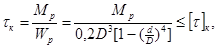 Такое низкое допускаемое напряжение принимают потому, что полярный момент сопротивления (Wp) определяют без учета ослабления поперечного сечения втулки отверстиями под штифты, шпоночные канавки или шлицы.