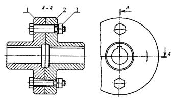 Фланцевые (поперечно-свертные) муфты (рис. 24.5) рекомендуется применять для соединения соосных валов. Полумуфты (1, 2) насаживают на концы валов с натягом (легкопрессовая или глухая посадки) и стягивают болтами (3).