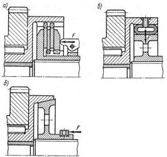 В малых муфтах крутящий момент передается силами трения, а в крупных – дополнительно ставят призматическую шпонку.