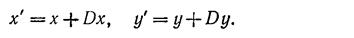 Точки на xy -плоскости можно перенести в новые позиции путем добавления к координатам этих точек констант переноса. Для каждой точки Р(х, у), которая перемещается в новую точку Р'(х, у), сдвигаясь на Dx единиц параллельно оси x и на Dy единиц параллельно оси у, можно написать уравнения: