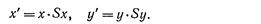 Точки можно промасштабировать (растянуть) в Sx раз вдоль оси x: и в Sy раз вдоль оси у, получив в результате новые точки, с помощью умножения