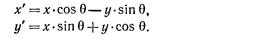 Точки могут быть повернуты на угол θ относительно начала координат, как показано на рис. 2.2 для точки Ρ (6, 1) и угла θ = 30°. Математически поворот определяется следующим образом: