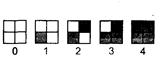 Наиболее часто используют квадратные ячейки больших размеров. Приведем пример ячеек размером 2x2 (рис. 3.17). Такие ячейки дают 5 градаций, из них три комбинации (1, 2, 3) образуют новые оттенки.