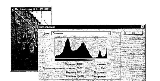 Если основная масса пикселов изображения смещена к одному из краев графика, вы вряд ли вы сможете спасти изображение с помощью коррекции. И наоборот, достаточно равномерное распределение пикселов вдоль всей оси Х позволяете уверенностью сказать, что изображение может быть улучшено.
