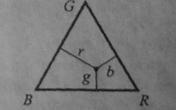 Соотношение коэффициентов r, g и b Максвелл наглядно показал с помощью треугольника, со временем названного его именем. Треугольник Максвелла является равносторонним, в его вершинах располагаются основные цвета — R, G и В (рис. 5.17). Из заданной точки проводятся линии, перпендикулярные сторонам треугольника. Длина каждой линии и показывает соответствующую величину коэффициента г, g или b. Одинаковые значения r = g = b имеют место в центре треугольника и соответствуют белому цвету. Следует также указать, что некоторые цвета отображаются точками вне треугольника RGB, — это означает отрицательное значение соответствующего цветового коэффициента. Сумма коэффициентов равняется высоте треугольника, а при высоте, равной единице, составляет r + g +b = 1.