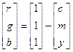 Соотношение для перекодировки цвета из модели CMY в RBG: