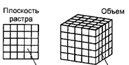 Воксельная модель – это трехмерный растр. Воксел это элемент объема. По аналогии с 2D растрами, состоящими из пикселов. Вокселы заполняют объем в трехмерном растре (рис.6.9)
