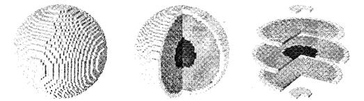 Рис. 6.10.Воксельная модель шара и ее разрезы.