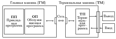В начале сеанса работы пользователь располагается перед дисплеем, подключенным к терминальной ЭВМ, инициирует терминальную программу и устанавливает связь с ЭВМ сети, на которой ему будет предоставлено необходимое обслуживание. Прикладная программа главной ЭВМ при необходимости выполнить ввод/вывод использует обслуживающую программу, функцией которой является интерфейс прикладной программы с сетевым графическим протоколом.