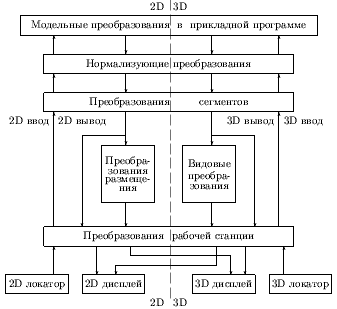 Рис.7.3. Схема преобразований координатной информации в графической системе