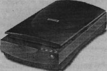Планшетные сканеры предназначены для ввода графической информации с прозрачного или непрозрачного листового материала, Принцип действия этих устройств состоит в том, что луч света, отраженный от поверхности материала (или прошедший сквозь прозрачный материал), фиксируется специальными элементами, называемыми приборами с зарядовой связью (ПЗС). Обычно элементы ПЗС конструктивно оформляют в виде линейки, располагаемой по ширине исходного материала. Перемещение линейки относительно листа бумаги выполняется механическим протягиванием линейки при неподвижной установке листа или протягиванием листа при неподвижной установке линейки. Планшетный сканер изображен на рис.9.13. Под крышку такого сканера «лицом» на стекло может закладываться не только отдельный лист или страница, а целая развернутая книга или журнал. Этим планшетные сканеры напоминают копировальные аппараты.