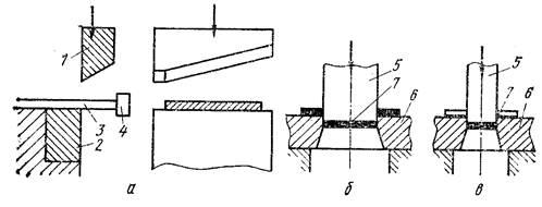 4 – упор;5 – пуансон; 6 – матрица; 7 – изделие.