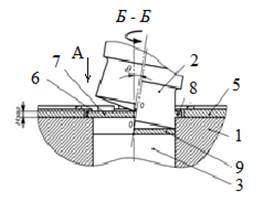 При этом ось инструмента наклонена к вертикальной оси под углом q, а торцовая часть подвижного инструмента непрерывно перекатывается по поверхности заготовки, образуя в каждый момент времени локальный очаг деформации.