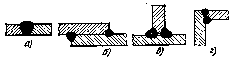 Все виды сварки образуют 4 основных типа соединений (рис. 6.1.):