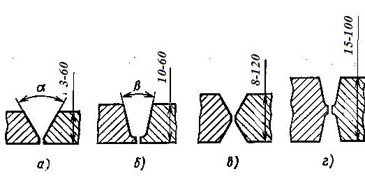 Стыковые соединения различают по виду предварительной подготовки кромок. В зависимости от способа сварки и толщины свариваемого металла производят различную подготовку кромок (рис. 6.2.):