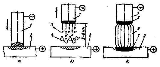 1 – электрод; 2 – дуга прямого действия; 3 – соединяемые заготовки;