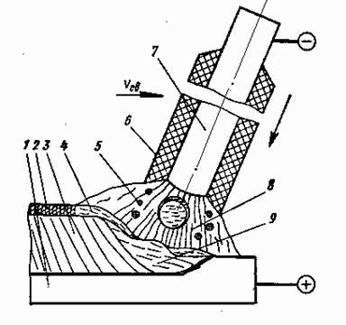 8 – электродуга; 9 – сварочная ванна.