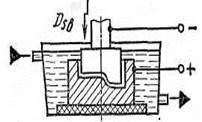 Электроэрозионная обработка заготовок основана на явлении эрозии (разрушения) электродов из токопроводящих материалов при пропускании между ними импульсного электрического тока. Разряд между электронами происходит в газовой среде или при заполнении межэлектродного промежутка диэлектрической жидкостью – керосином, минеральным маслом. В жидкой среде эрозия происходит более интенсивно. При наличии разности потенциалов на электродах происходит ионизация межэлектродного пространства. Когда разность потенциалов достигает определенного значения, в среде между электродами образуется канал проводимости, по которому передается электрическая энергия в виде импульсного искрового или дугового разряда. При высокой концентрации, реализуемой за 10-5–10-8 сек., мгновенная плотность тока в канале проводимости достигает 8000-10000 Н/мм2, в результате чего температура на поверхности обрабатываемой заготовки-электрода возрастает до 10000-12000 0С. Благодаря кратковременности процесса теплота не может распространиться по объему электрода, а поэтому происходит мгновенное оплавление и испарение элементарного объема металла анода, и на его поверхности образуется лунка.