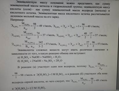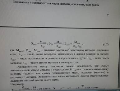 Эквивалент – это реальная или условная частица элемента Х или вещества Х, которая равноценна по химическому действию одному атому Н2.