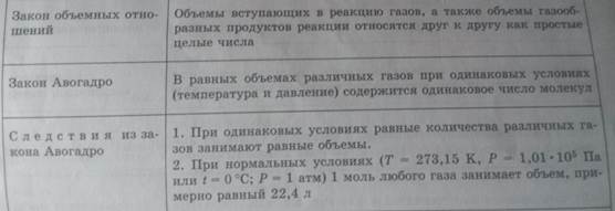Следствие. Стехиометрические коэффициенты в уравнениях химических реакций для молекул газообразных веществ показывают, в каких объемных отношениях реагируют или получаются газообразные вещества.