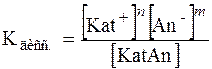 Кдис = [ а(А+n) а(В-m)/ а(АnВm)] g(АnВm)/g (А+n)g (В-m)
