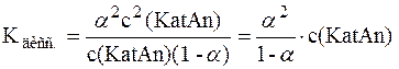 а недиссоциированных молекул: [KatAn] = (1-α) ·c(KatAn)