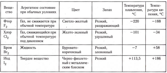 Распространенность в природе. Галогены в природе существуют только в виде соединений с другими элементами. Наиболее распространены хлор и фтор, их содержание составляет 0,19 % и 0,03 % от массы земной коры. Природные соединения галогенов представлены в таблице 16. Все галогены в виде солей содержатся в водах океанов, морей, рек и озер.