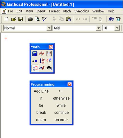 Система MathCAD обладает мощнейшим математическим инструментарием, позволяющим охватить достаточно большой круг различных задач. Вместе с тем в практике встречаются задачи, решение которых требует использования специальных методов, не реализованных в MathCAD в виде стандартных функций и команд. Для решения таких задач MathCAD предоставляет определенный инструментарий создания программных модулей, включенных в панель Programming (Программирование) (рис. 34).