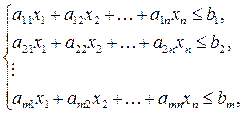 В итоге математическая модель задачи планирования производства может быть сформулирована следующим образом: составить такой план производства продукции X =(x1, x2, …, xn), удовлетворяющий системе ограничений (6.4), условию (6.5), при котором целевая функция (6.6) принимает наибольшее значение.