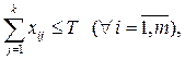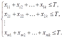 В силу ограниченности времени выполнения заказа величиной Т, будет справедлива следующая система ограничений: