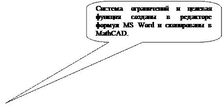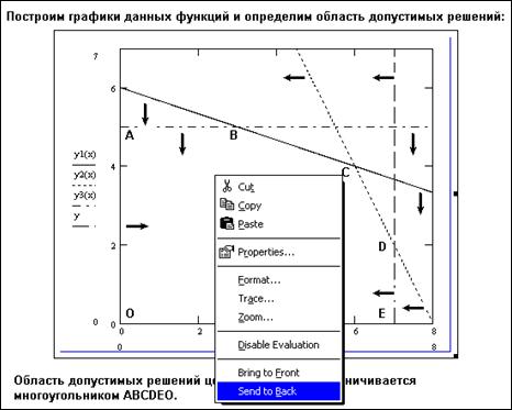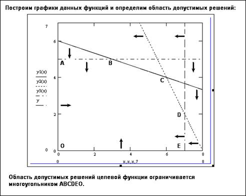 Рис. 45. Фрагмент MathCAD-документа: область допустимых решений задачи